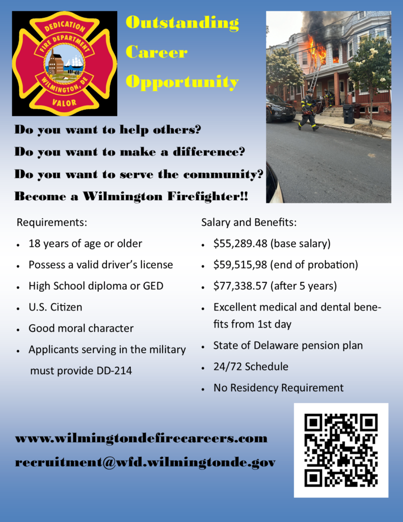 Thank you for your interest in employment with the Wilmington Fire Department. We are not currently hiring. Click the link below to complete a contact card. The information on the card will be used to notify you the next time we are hiring.